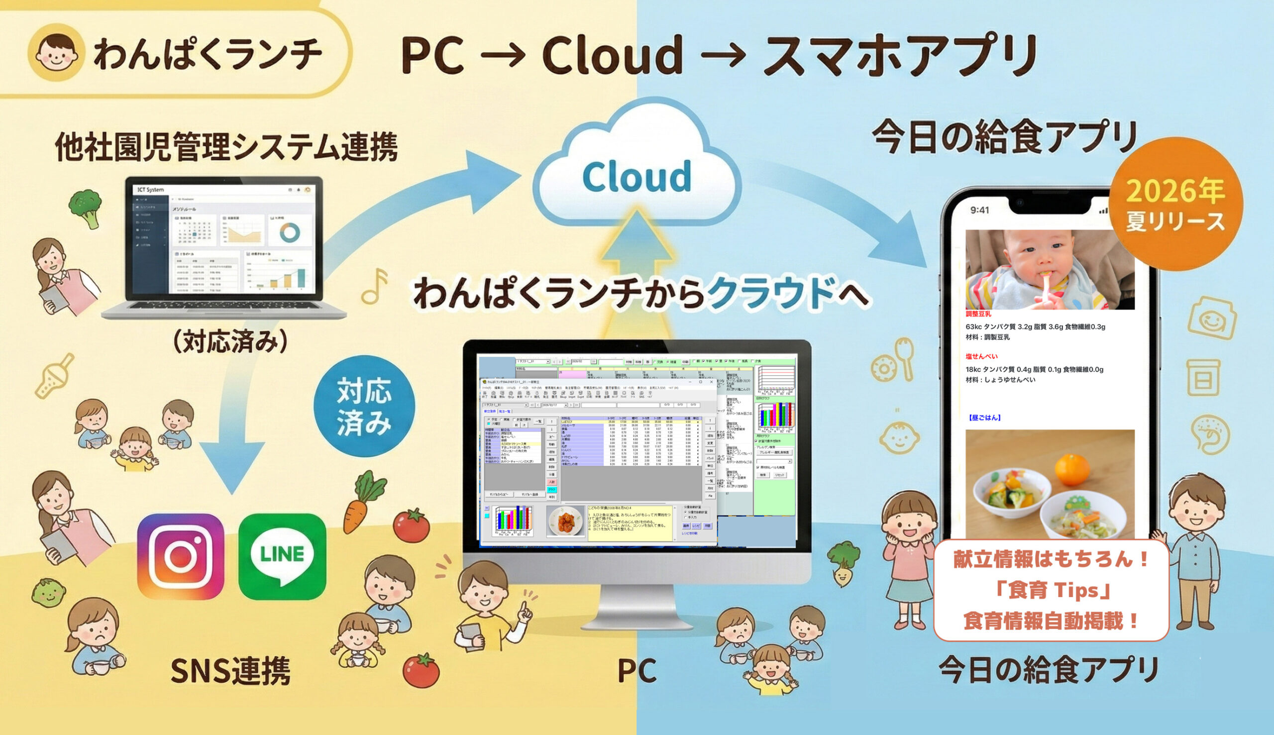アレルギー対応の保育園・幼稚園給食の栄養管理ソフト「わんぱくランチ」