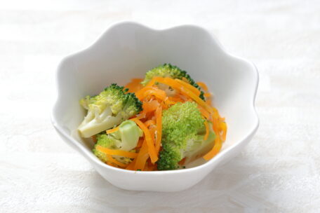 かつお節の旨味と塩味がブロッコリーの甘さを引き立てます。シンプルな味付けながら、にんじんの細切りが彩りと食感をプラスし、どんな献立にもよく合う一品です。しょうゆで和えてもおいしくいただけます。